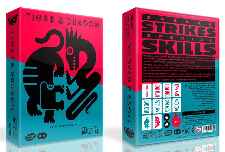 日文版一出即刻賣到斷貨嘅日本Arclight Games同Oink Games合作出品嘅 虎與龍 Tiger & Dragon 英文版嚟喇!根據日本傳統遊戲改編,雖然有好似麻雀咁嘅配件,但玩洗完全唔同。每回合由起始玩家開始出牌'進攻',下家就要出返相同數字牌作'防守'或者Pass!如防守成功後就可以到你出牌進攻!邊位玩家最快出晒自己嘅牌就會勝出今局遊戲並得到分數。除咗個人賽仲可以團體賽添!