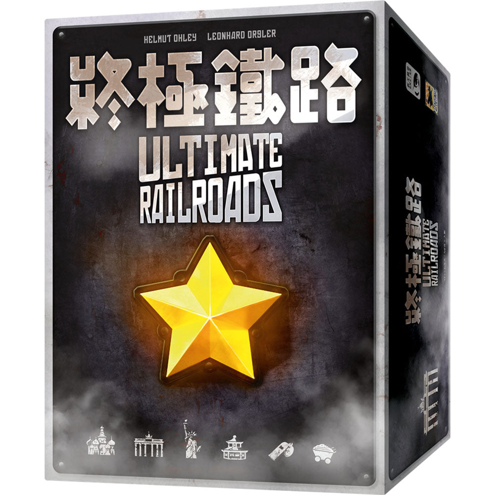 Ultimate Railroads includes the Russian Railroads base game and all expansions for the game — German Railroads and American Railroads, as well as the smaller promo items New Engineers, Juri Dreigleisky, and Manufactory Train — along with two new items: Asian Railroads and a solo variant.